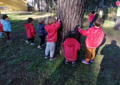 Día 30 nos recojieron la profesora para llevarnos a otro centro de infanzia Pino Verde allí nos presentaron a las profes de allí que eran 2 solo había una clase de 2 a 3 años con 20 niños llegamos y estaban contandoles un cuento después desayunaron y nos fuimos al campo donde los niños jugaron y experimentaron libremente.
